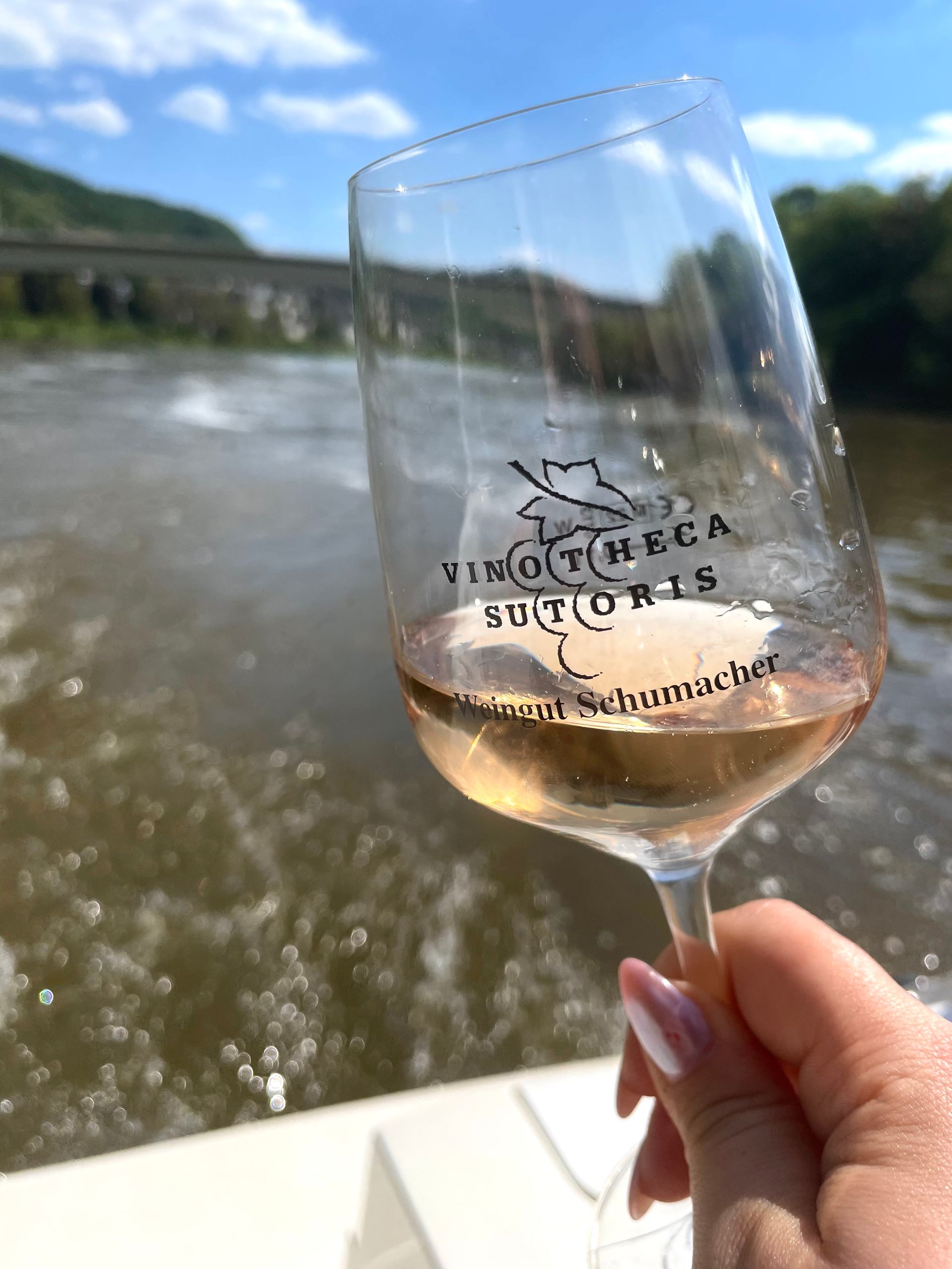 Mit unserer Vino schippern wir Sie ganz entspannt durch die wohl faszinierendste Moselschleife: Die der Calmont-Region! Dazu servieren wir Moseltapas und wir probieren den Wein der gerade vorbeiziehenden Weinlagen. Wir treffen uns am Weingut und fahren gemeinsam mit unserem Bus zum Hafen nach Senheim.